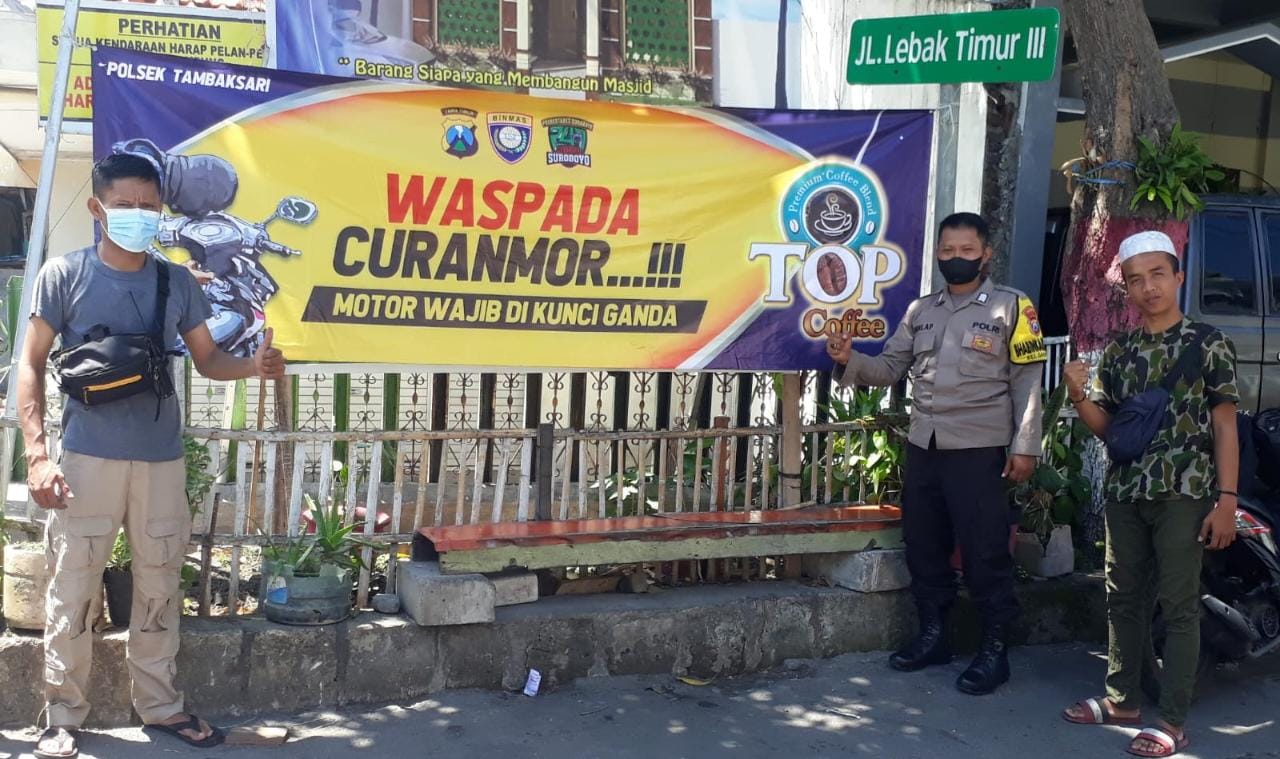 Kapolsek Tambaksari Kompol Ari Bayuaji, S.E S.I.K. M.Si mengatakan Spanduk imbauan waspada curanmor kita pasang di sejumlah tempat agar masyarakat lebih waspada. Dengan kewaspadaan dapat mencegah terjadinya pencurian sepeda motor imbuhnya, Rabu (07/09/2022).