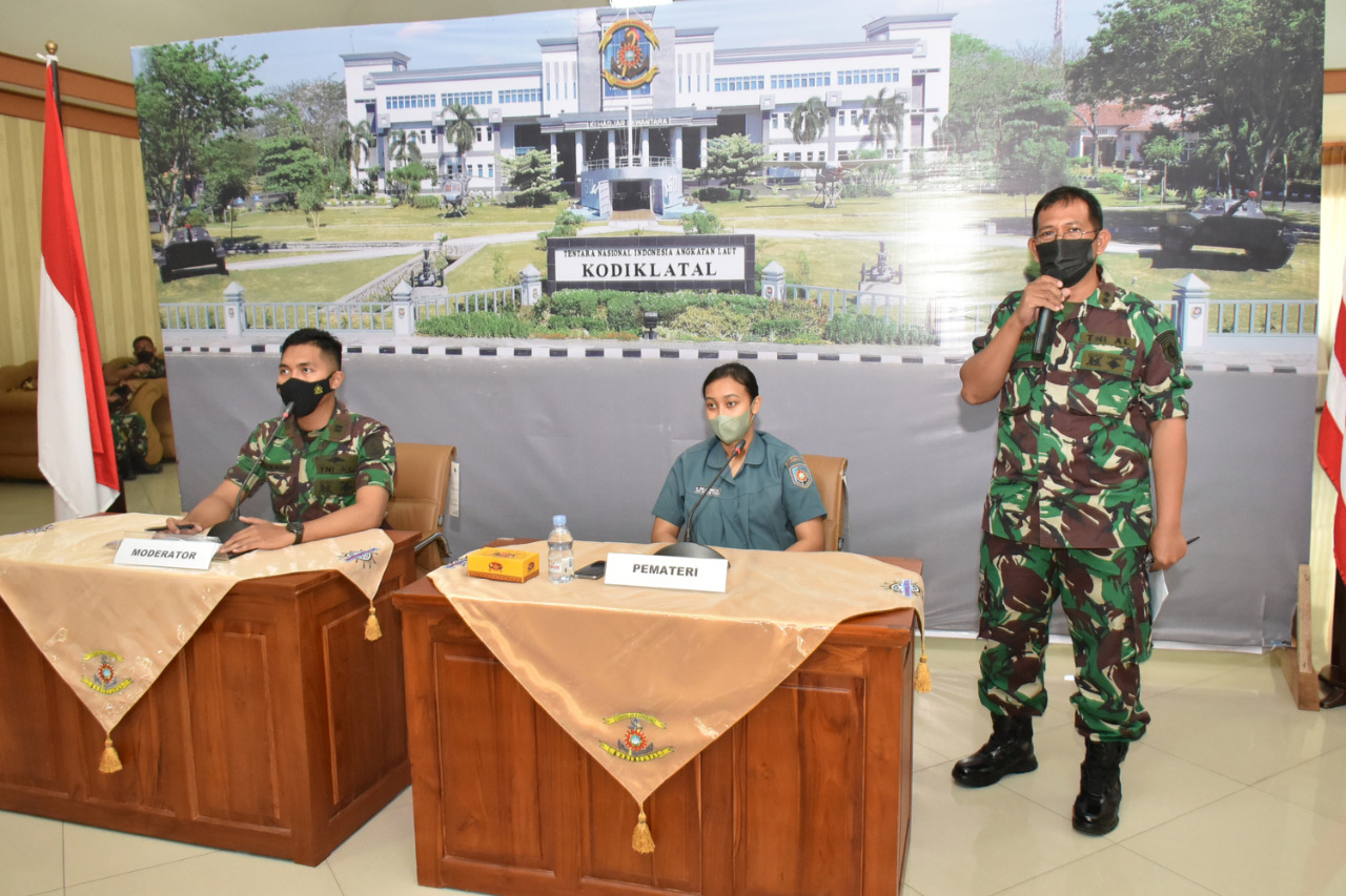 Brilian°Surabaya, ~Dalam rangka mencegah penyebaran varian baru Covid-19 Omicron, Satuan Tugas (Satgas) penanganan Covid 19 Komando Pembinaan Doktrin Pendidikan dan Latihan TNI AL (Kodiklatal) menggelar sosialisasi Varian Baru Virus Covid-19 Omricon kepada seluruh prajurit, Pegawai Negeri Silpil (PNS) dan keluarga prajurit secara Virtual. Adapun sosialisi yang bisa diaksi dengan aplikasi Zoom tersebut di di laksanakan di Ruang Joglo Moeljadi Kesatrian Kodiklatal Bumimoro Surabaya, Kamis, (16/12/2021).
