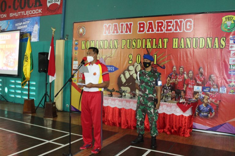 Brilian°Surabaya – Ajang main bareng (mabar) Badminton bertajuk Danpusdiklat Hanudnas tahun 2021 secara resmi dilaksanakan di Gor Amerta Pusdiklat Hanudnas Surabaya, Senin (22/11/2021).