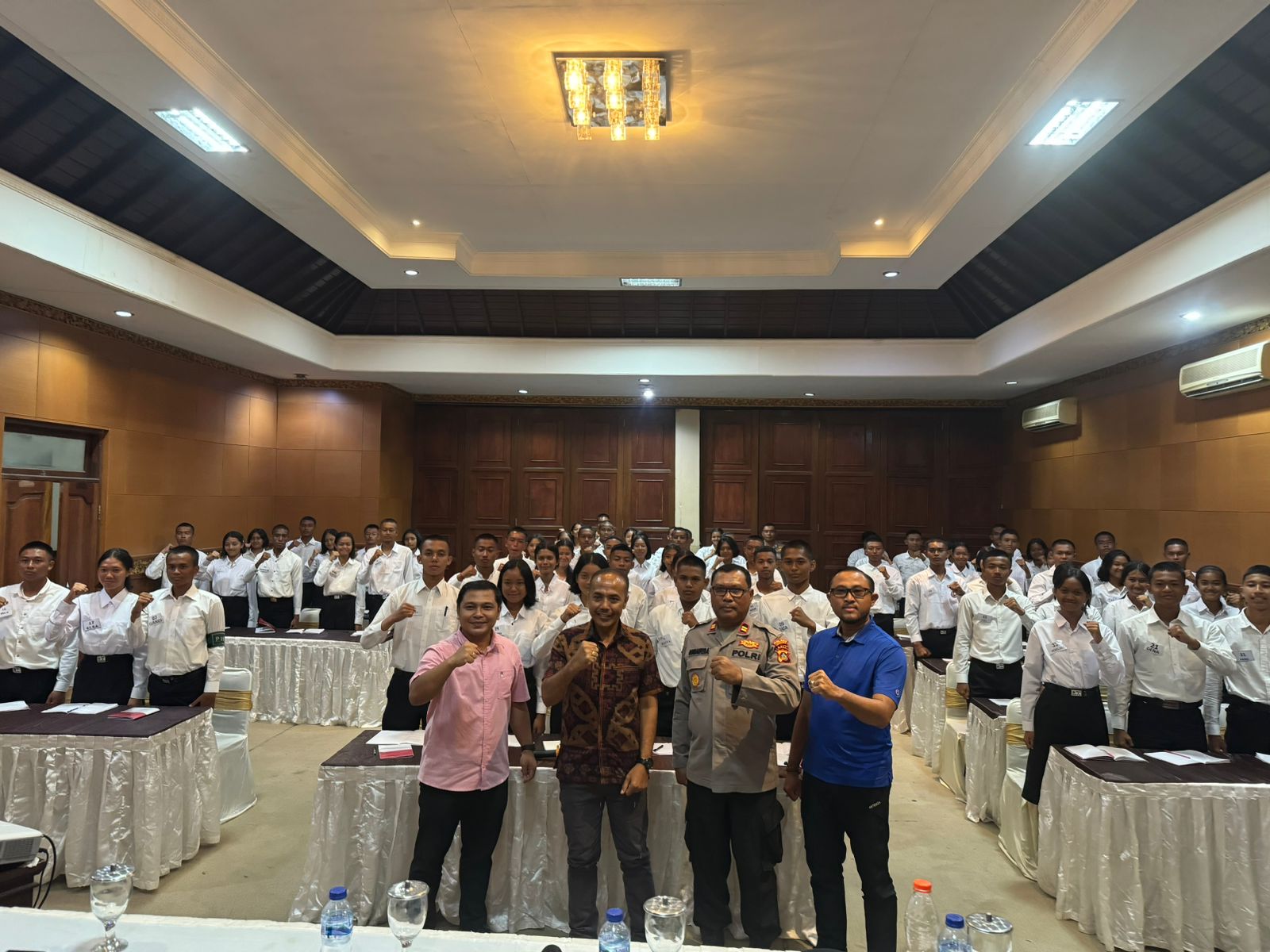 “Mari bulatkan tekad pada Nusa dan Bangsa khususnya adik-adik Paskibraka yang akan melaksanakan Upacara Hari jadi Negara Republik Indonesia ke-78 di Puspem Badung,” Ungkapnya seijin Kapolres Badung AKBP Teguh Priyo Wasono,S.I.K, yang juga dihadiri oleh KBO Sat Intelkam Iptu A.A. G. Ari Dwipayana, S.H, Kepala Bidang Ideologi, Wawasan Kebangsaan dan Karakter Bangsa I Nyoman Trisna Aditia Warman. S.IP, Pendamping Calon Paskibraka Kab. Badung dihadapan 70 orang anggota Paskibraka Badung.