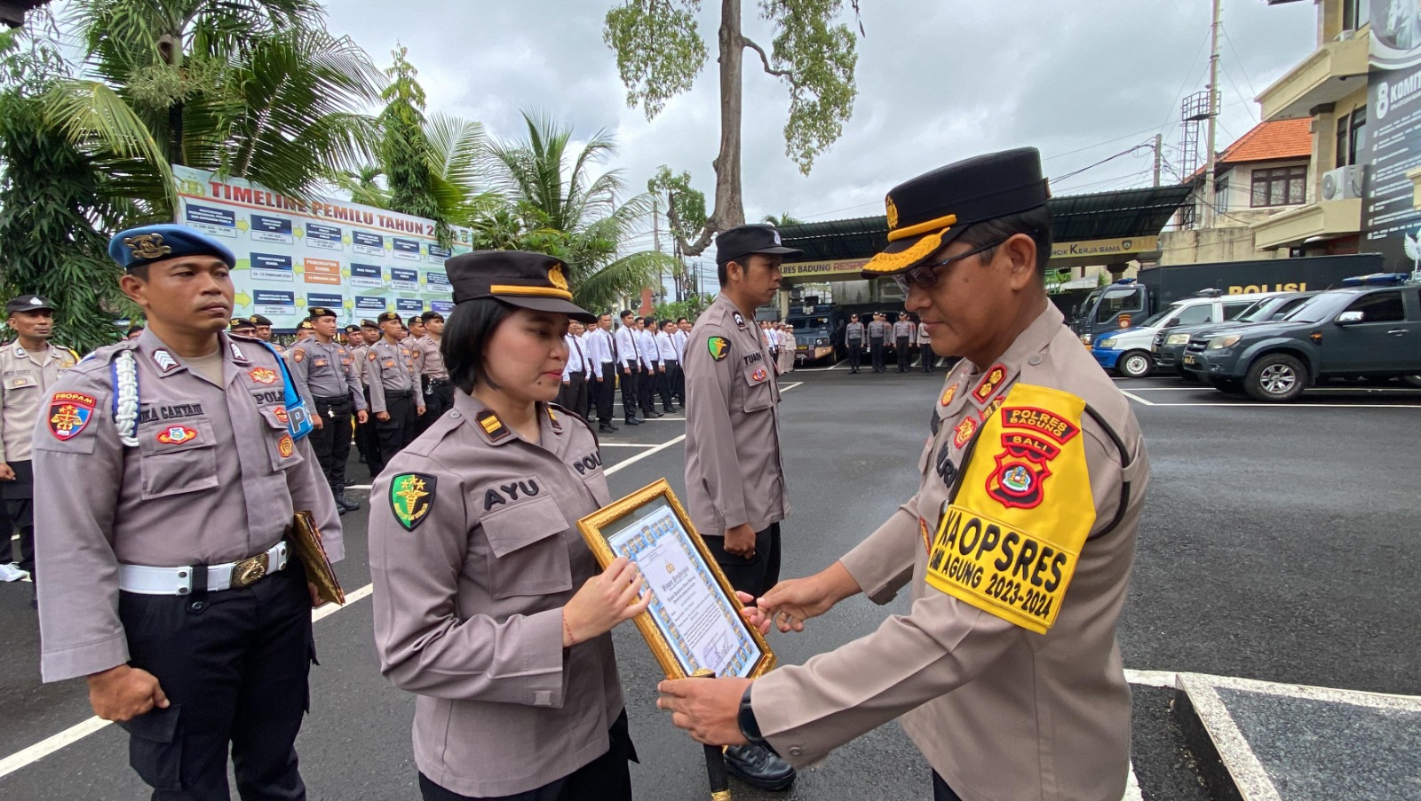Brilian-news.id | BALI – Kepala Kepolisian Resor Badung AKBP Teguh Priyo Wasono, SIK memberikan penghargaan kepada personel yang berprestasi dalam apel pagi yang dirangkai dengan apel jam pimpinan di lapangan apel Polres Badung Jl. Kebo Iwa No. 1 Mengwitani Kecamatan Mengwi Kabupaten Badung. Senin, 22 April 2024 pagi pukul 08.30 Wita.