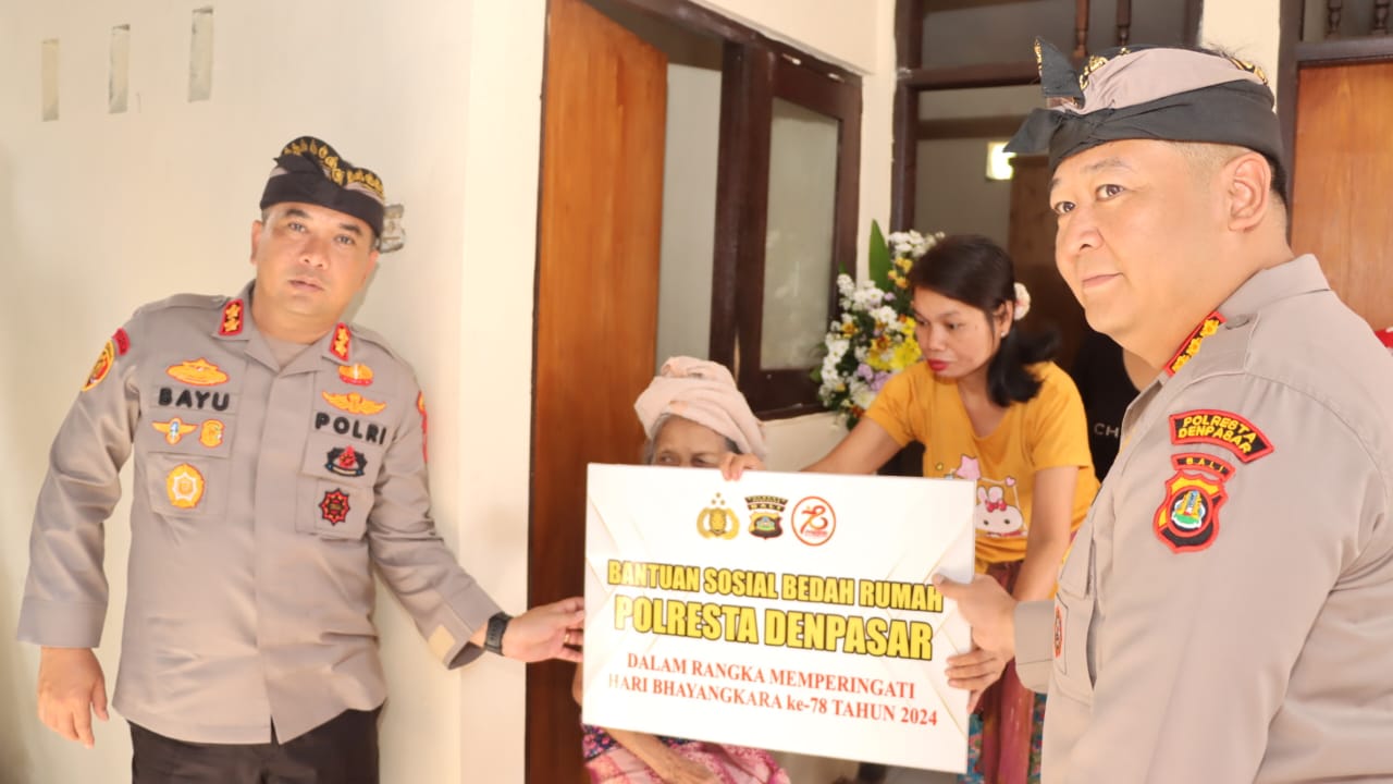 “Kegiatan bedah rumah ini merupakan wujud rasa syukur kami sebagai anggota Kepolisian khususnya Polresta Denpasar yang merayakan Hari Bhayangkara ke-78 tahun 2024 dengan sama-sama berbagi dan peduli dengan warga yang kurang mampu melalui aksi nyata yaitu bedah rumah yang tidak layak huni,” ucap Kapolresta saat menyampaikan sambutan disela-sela penyerahan.