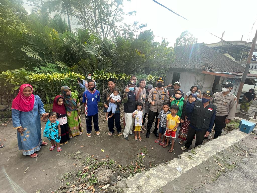 Kapolda menyempatkan untuk menyapa dan bercengkrama dengan masyarakat di wilayah terdampak erupsi semeru di kecamatan Pronojiwo kabupaten Lumajang.