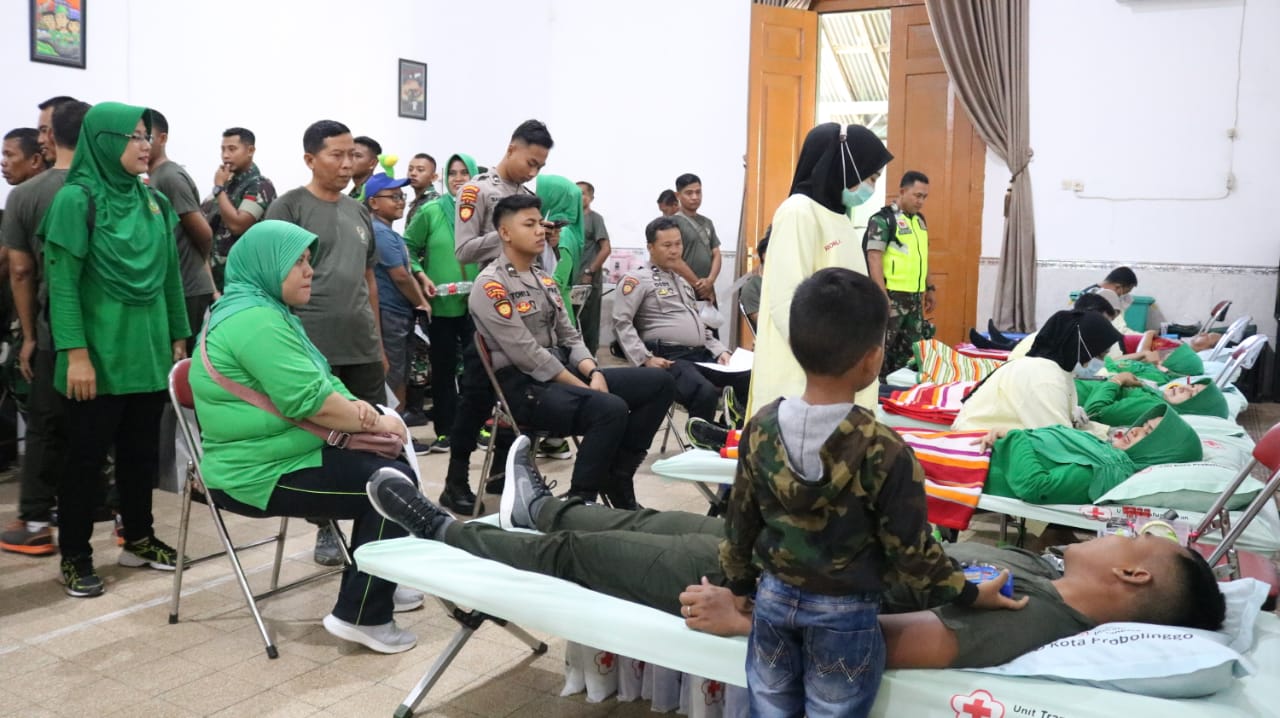 Dalam kegiatan bakti sosial donor darah yang bekerja sama dengan palang merah Indonesia (PMI) Kota Probolinggo tersebut tampak melibatkan keluarga besar Kodim 0820/Probolinggo.