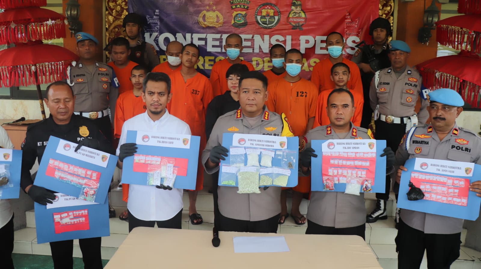 “Tersangka yang berhasil diamankan sebanyak 41 orang tersangka pengedar dan pemakai narkoba, 40 laki-laki dan 1 perempuan,” ungkap Kapolresta Denpasar Kombes Pol. Wisnu Prabowo, SIK.,MM. didampingi Wakapolresta AKBP I Made Bayu Sutha Sartana, SIK.,MH. dan Kasat Narkoba Kompol Yogie Pramagita,S.H.,S.I.K.,M.H. kepada media Rabu (31/1/24) di Mapolresta.