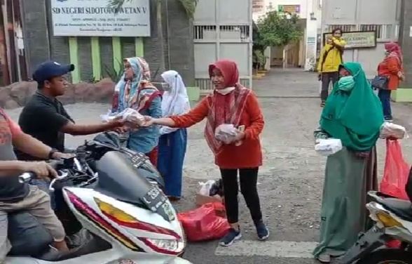 Brilian°Surabaya – Sekolah Dasar Negeri (SDN) Sidotopo Wetan V, Kecamatan Kenjeran, Kota Surabaya kembali menggelar bhakti sosial berbagi ribuan paket takjil dan buka puasa, di Jalan Platuk Donomulyo, Sabtu 16 April Surabaya.