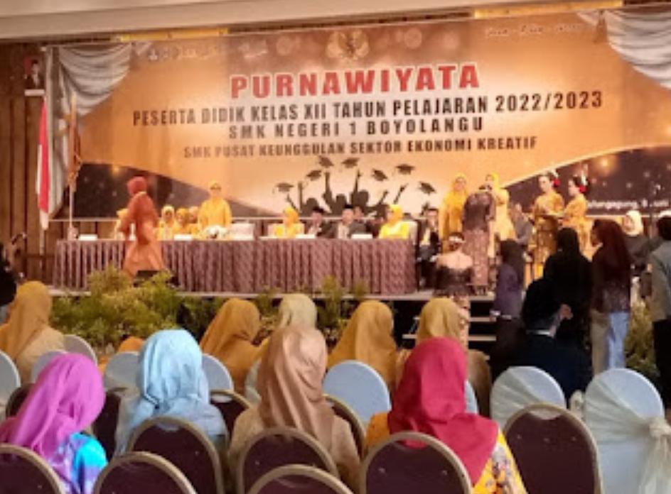 Tampak hadir dalam acara purnawiyata tersebut, Kepala Cabang Dinas Pendidikan Jawa Timur wilayah Tulungagung, Kepala Sekolah SMKN 1 Boyolangu, Arik Eko Lestari S. Pd, Muspika kecamatan Boyolangu, beberapa kepala sekolah SMKN di kabupaten Tulungagung, seluruh Waka sekolah beserta guru pengajar, komite sekolah, wali kelas siswa kelas XII, seluruh wisudawan kelas XII dan tamu undangan yang lain.