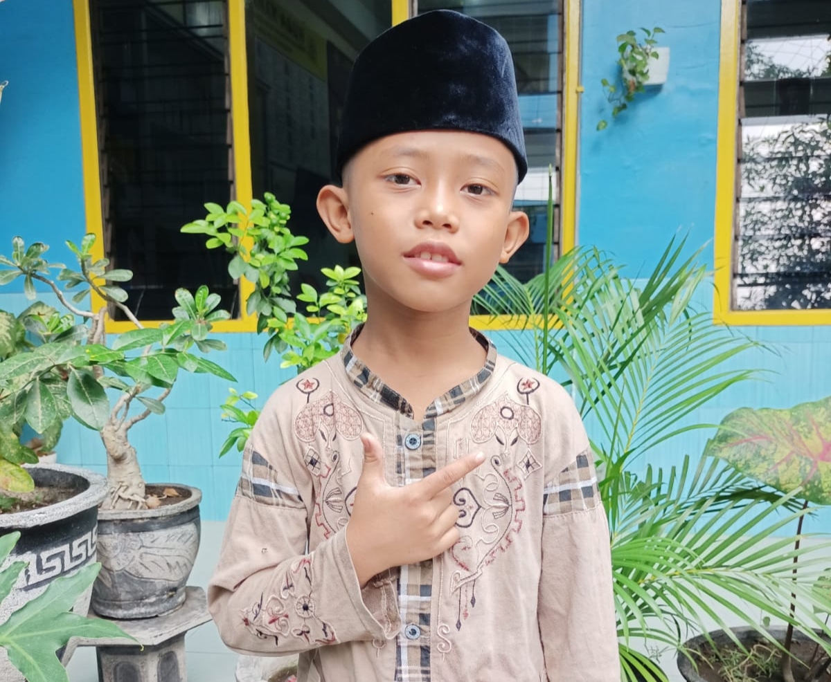 Saat itu Arya Saputra Nugraha yang siswi MI Muhammadiyah 25 kelas 1 ini tidak ada yang menghampiri dan memeluk seperti santri pada umumnya.Arya hanya duduk termenung sambil melihat teman-temannya yang bertemu dengan keluarga dan saudara masing-masing.
