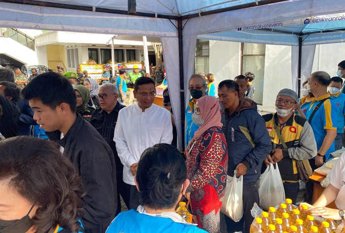Brilian•Bandung – Ketua DPRD Kota Bandung H. Tedy Rusmawan, A.T., M.M., mengunjungi pasar murah gelaran Masyarakat Tionghoa Peduli dan Pikiran Rakyat, di Halaman Kantor Pikiran Rakyat Bandung, Jumat (31/3/2023).