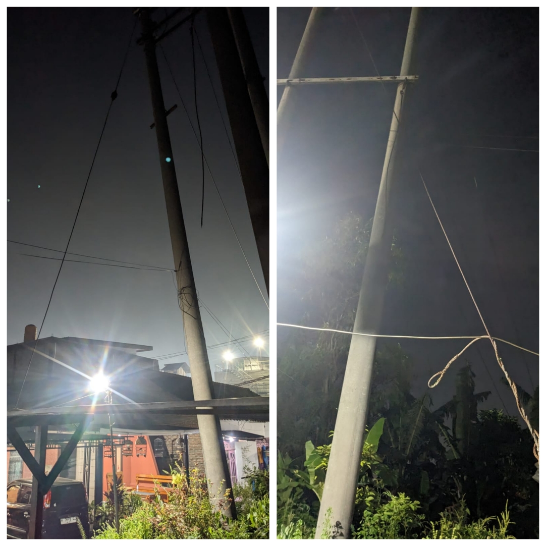 Kekhawatiran warga bukan tanpa alasan. Menurut warga setempat, di lokasi yang tak jauh dari tanah ambrol tersebut. sebuah tiang listrik pernah roboh sekitar tahun 2020 lalu. Kini, tiga pancang saluran Tegangan Menengah (TM) di area tersebut tampak miring ke arah pemukiman warga. Lebih parah lagi, dua kabel seling baja yang menopang pancang terlihat dalam kondisi mengkhawatirkan. satu di antaranya sudah putus, sementara yang lain berkarat parah.