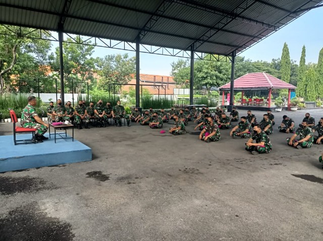 Brilian°Surabaya, — Guna meningkatkan disiplin prajurit jajaran Pusat Latihan Marinir (Puslatmar) Komando Pembinaan Doktrin, Pendidikan dan Latihan TNI AL (Kodiklatal), Danpuslatmar Kodiklatal Kolonel Marinir I Dewa Nyoman Gede Rake Susilo, S.E. memberikan nasehat dan arahan kepada anggotanya pada kegiatan jam komandan bertempat di Park & Lounge Puslatmar Kesatrian Kodiklatal Bumimoro Surabaya, Selasa, (4/1).