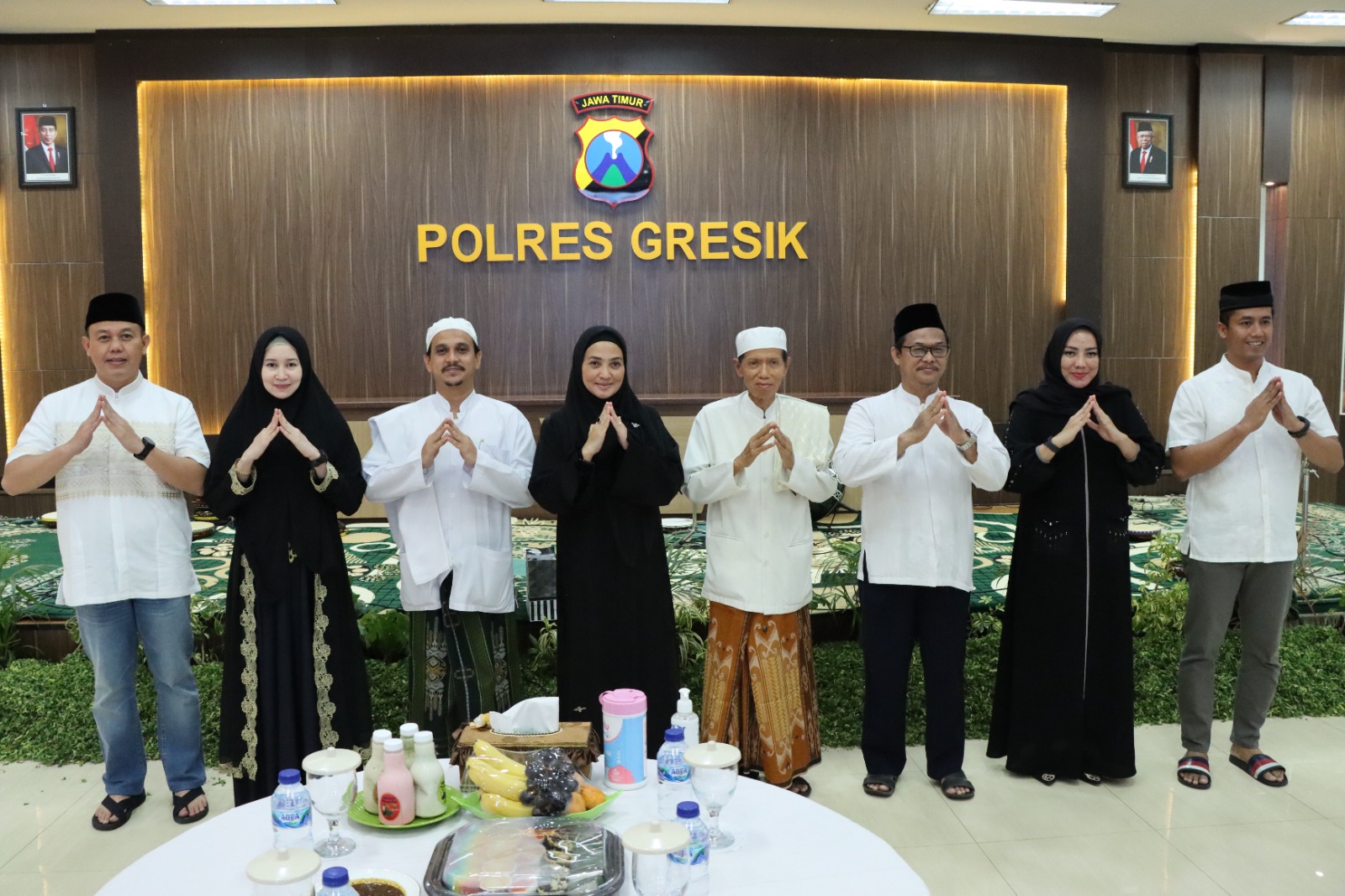 Tim Hadrah Aulian Musthofa Polda Jatim yang dipimpin Ketua Bhayangkari Daerah Jatim Ny. Yesika Toni Harmanto didampingi Ketua Bhayangkari Cabang Gresik Ny. Myrna Adhitya Ketua Bhayangkari Cabang Gresik dan dihadiri Ketua MUI Kabupaten Gresik KH. Mansoer Sodiq, Ketua PD Muhammadiyah Gresik H. Muhammad Toha Mahsun, Habib Ismail, Kapolres Gresik AKBP Adhitya Panji Anom, para PJU dan Pengurus Bhayangkari Cabang Gresik juga Tim Hadrah Aulian Musthofa Polda Jatim beserta Tim Hadrah Banjari Polres Gresik.