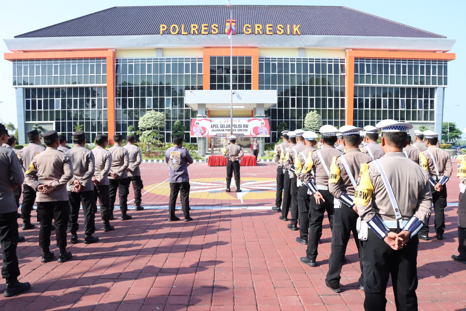 Perlu diketahui Kabupaten gresik terdiri dari 18 kecamatan, 330 desa, 26 kelurahan dan 2068 rw, Dalam mendukung program Polisi RW Polres Gresik telah menugaskan sebanyak 524 anggota sebagai Polisi RW terdiri dari personil bag, sat dan sie serta polsek jajaran, sesuai tr petuntuk direktorat binmas agar Polres Gresik mengisi 40 % dari jumlah RW yang ada di wilayah Kab Gresik, namun dengan keterbatasan jumlah personil baru ter isi 27 % kedepan akan dilakukan revisi perubahan.