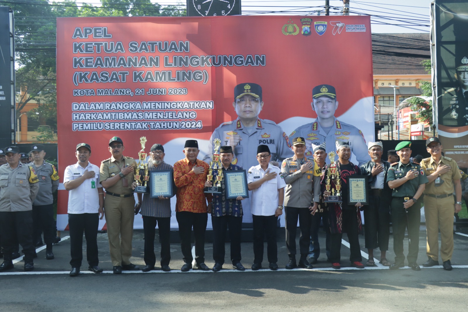 Brilian°Malang – Apel Ketua Satuan Keamanan Lingkungan Satkamling di gelar di lapangan Apel Polresta Malang Kota pada Rabu, ( 21/6/2023 )pukul 08.00 WIB. Acara tersebut diselenggarakan dalam rangka pemberian penghargaan kepada pemenang Satkamling jajaran Kota Malang sebagai wujud apresiasi dari kontribusi warga masyarakat dalam menjaga keamanan dan ketertiban lingkungannya.