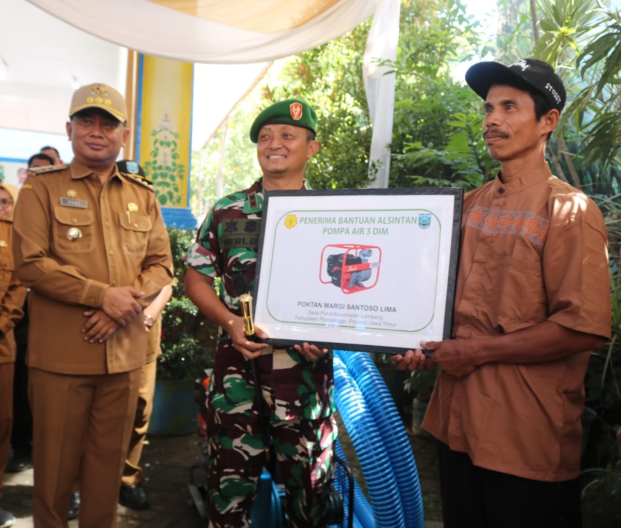 Terimakasih kepada TNI-AD, khususnya kepada Komandan Kodim 0820/Probolinggo. Bantuan pompa yang ada saya harap digunakan dengan maksimal dan akan kita perioritaskan kepada petani yang ingin betul-betul bekerja. Kedepan Pemkab Probolinggo akan terus melakukan penyuluhan, pengawas pupuk subsidi.