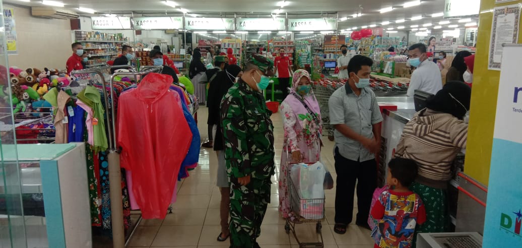Brilian*Probolinggo – Koramil 0820/12 Kraksaan memantau secara langsung penerapan protokol kesehatan dimasa pemberlakuan pembatasan kegiatan masyarakat (PPKM) level II di sejumlah tempat perbelanjaan di wilayah teritorialnya.