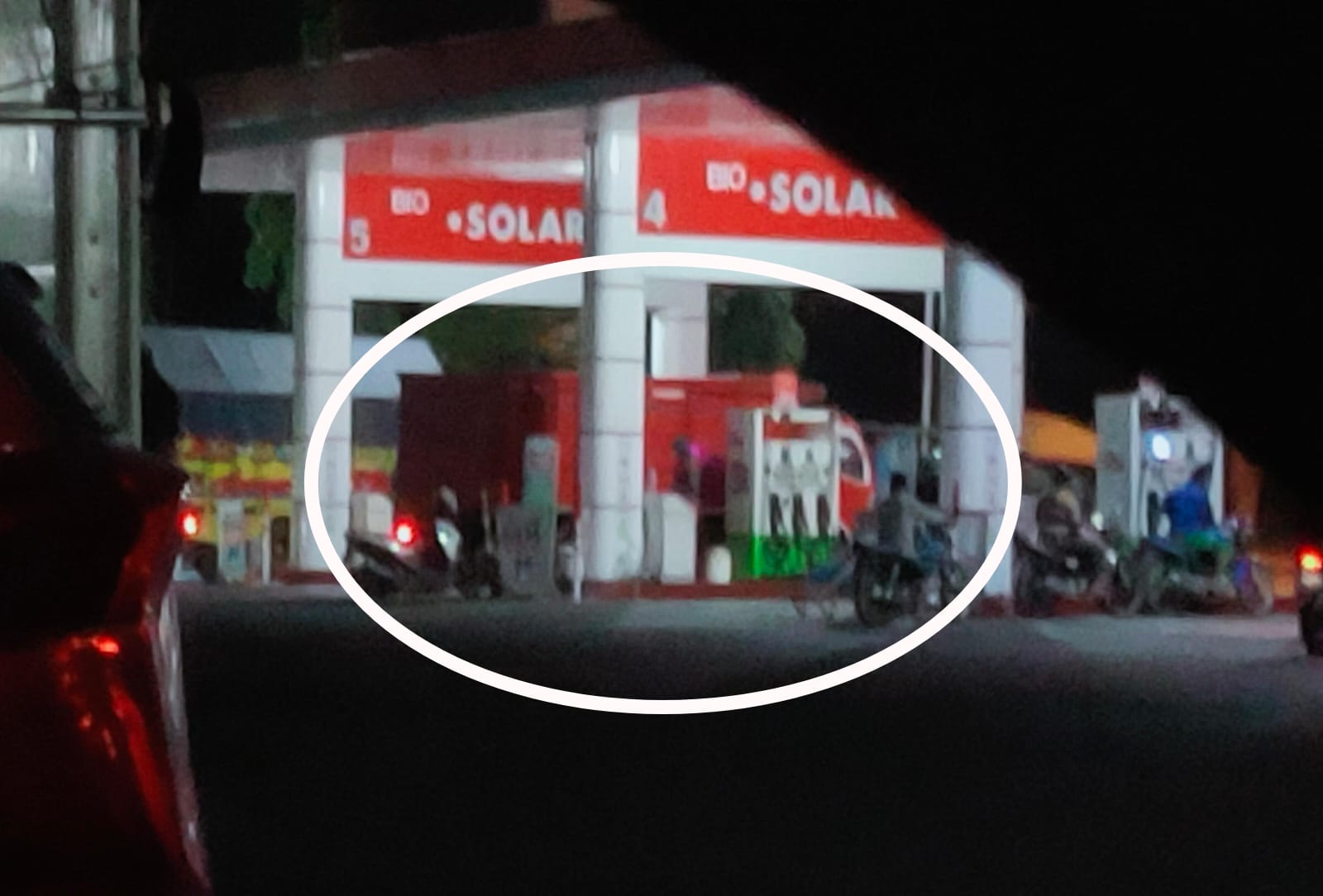 Tidak cuma di situ saja di pom bensin jl Embong anyar kec nguling saja banyak sepeda motor yg selalu isi bolak balik tapi Ndak ada ketegasan ,pom bensin yg sekarang off karna ada kejadian meledak nya tandon BBM