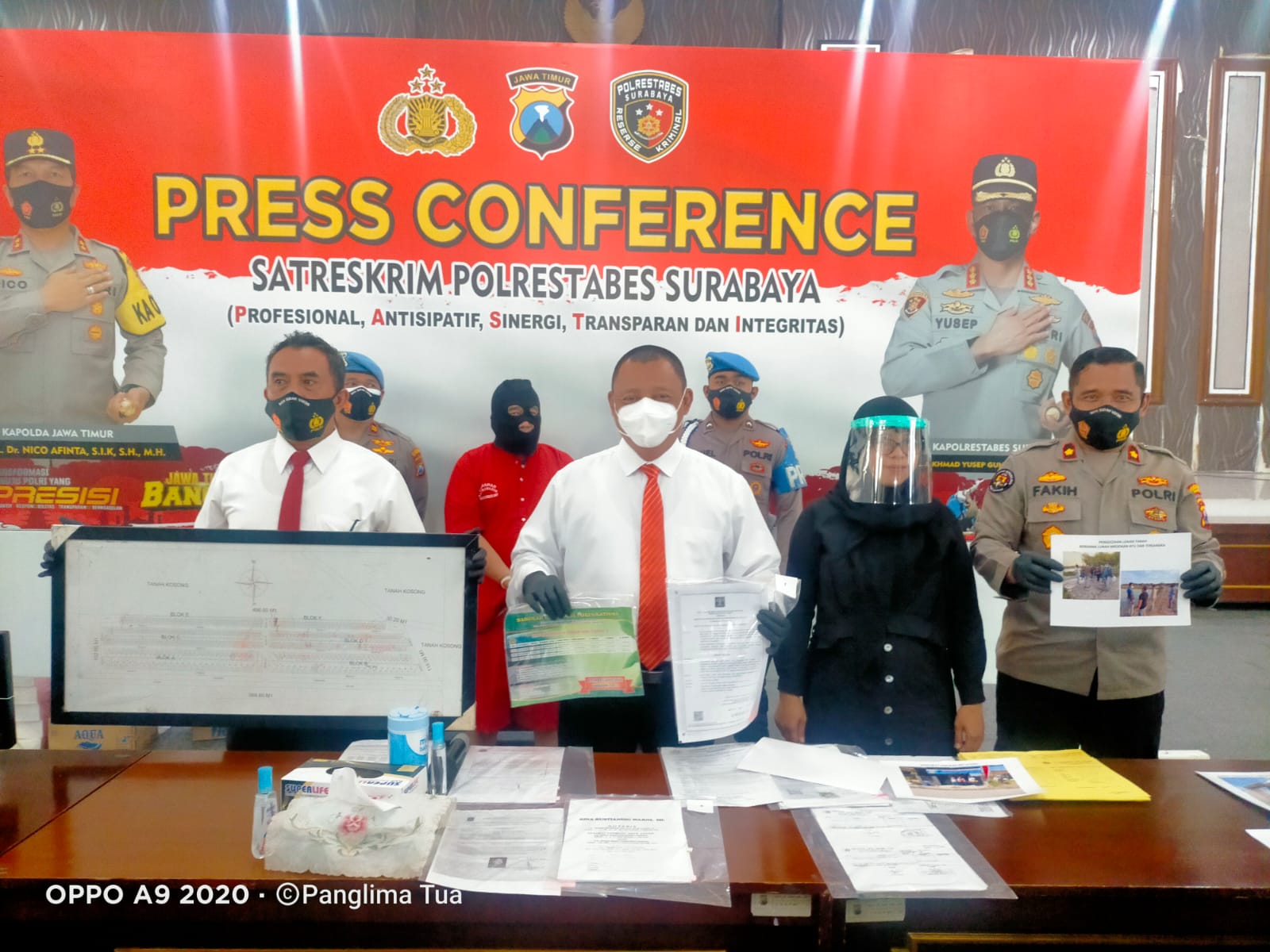 Brilian°Surabaya – Satreskrim Polrestabes Surabaya melalui unit Harda berhasil mengungkap dan menangkap salah pelaku mafia tanah dengan modus jual tanah kavling bodong alias palsu.