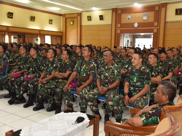 Brilian°Surabaya, – Wakil Komandan Kodiklatal, Laksamana Muda TNI Agus Hariadi memberikan pencerahan terkait karier kepada prajurit strata Bintara dan Tamtama dari seluruh satuan jajaran Kodiklatal, dalam acara pembekalan yang dilaksanakan di Gedung Mulyadi , Ksatrian Kodiklatal Bumimoro, Surabaya pada Selasa (7/6/2022)