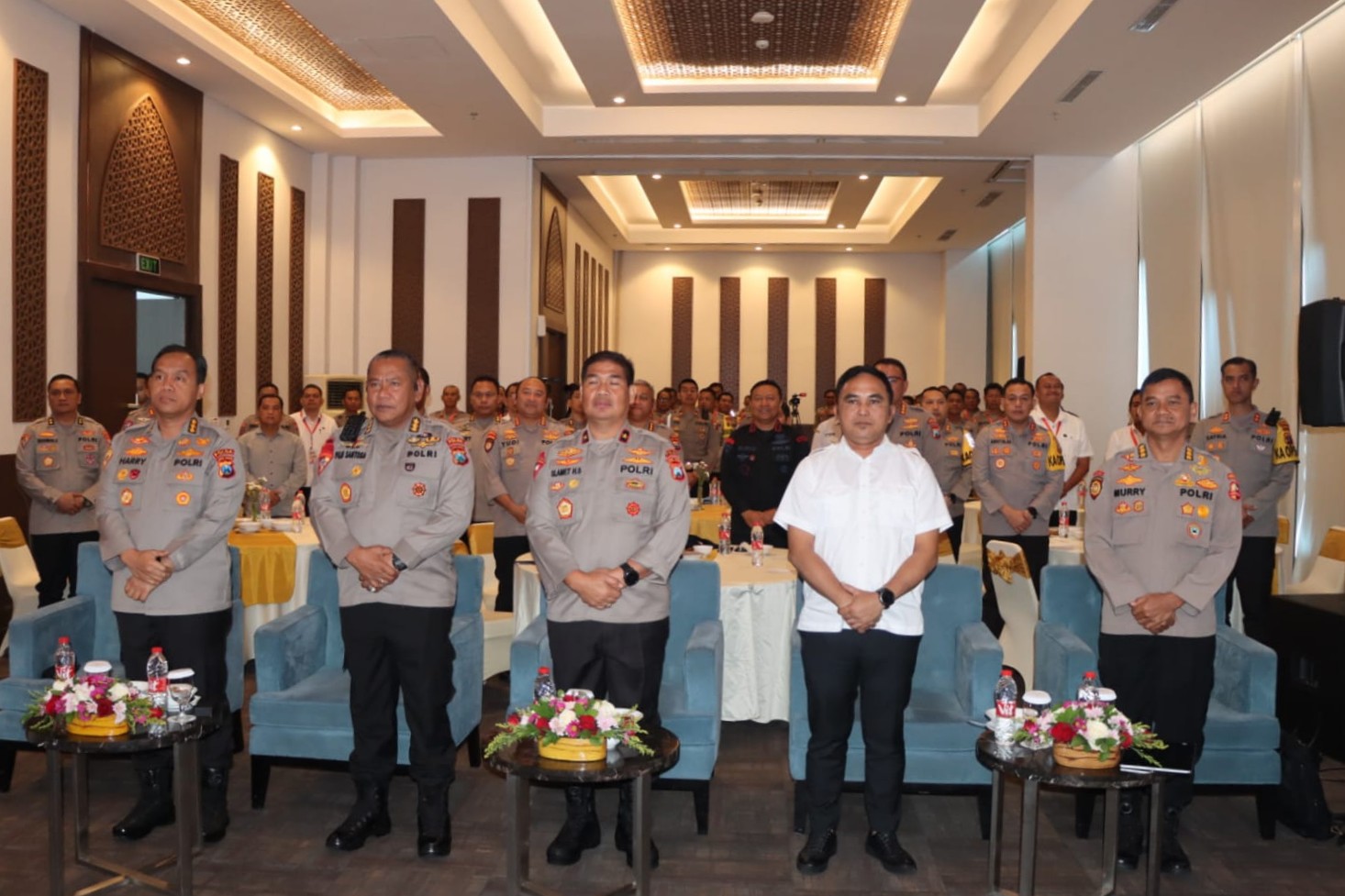 Hadir dalam arahan arahan Wakapolda Jawa Timur, PJU Polda Jawa Timur dan narasumber Kombes Pol Muri Miranda dari Mabes Polri dan Kapolres Jajaran se-Jawa Timur.