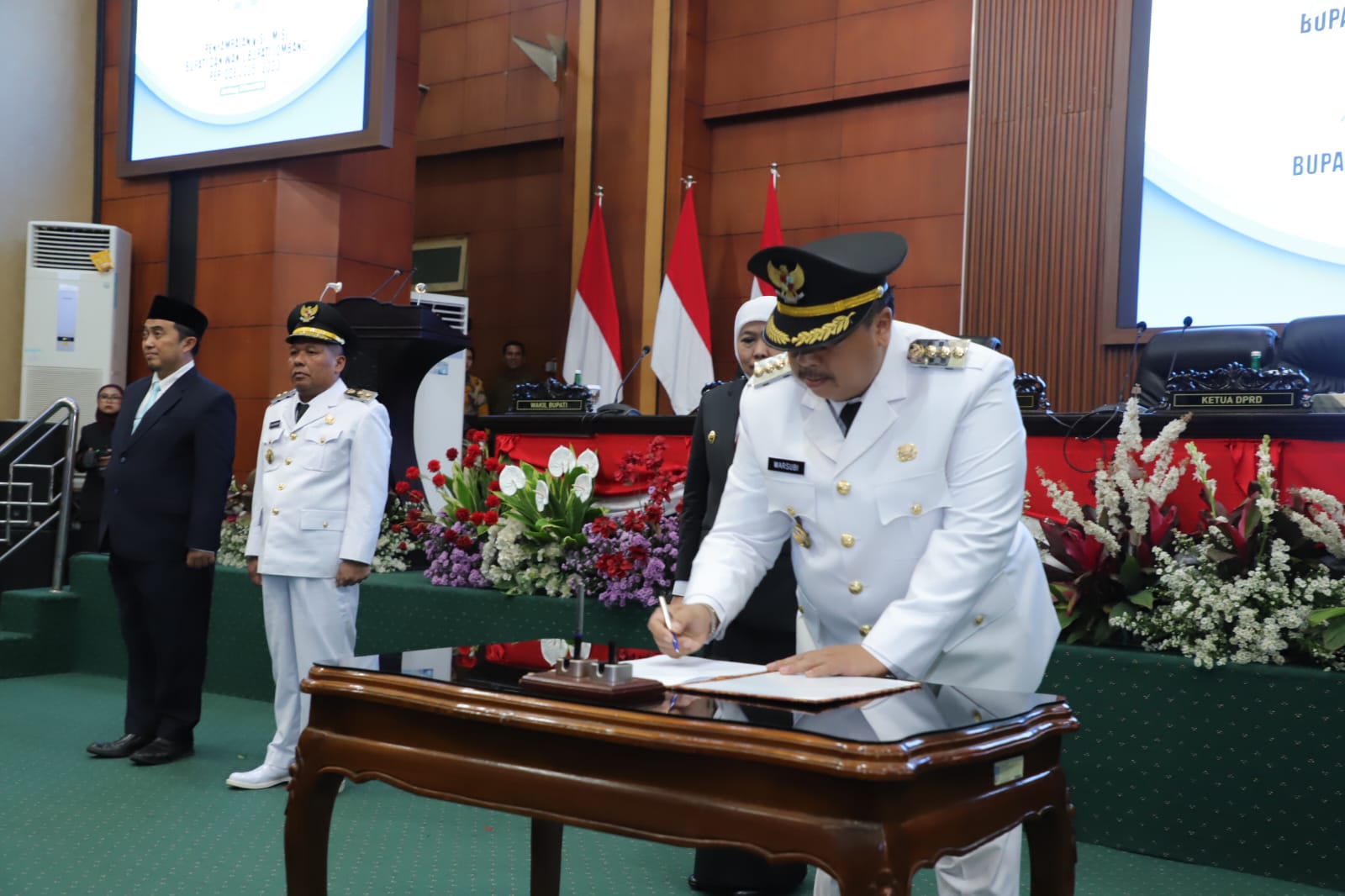Bupati Jombang Warsubi tandatangani serah terima jabatan.