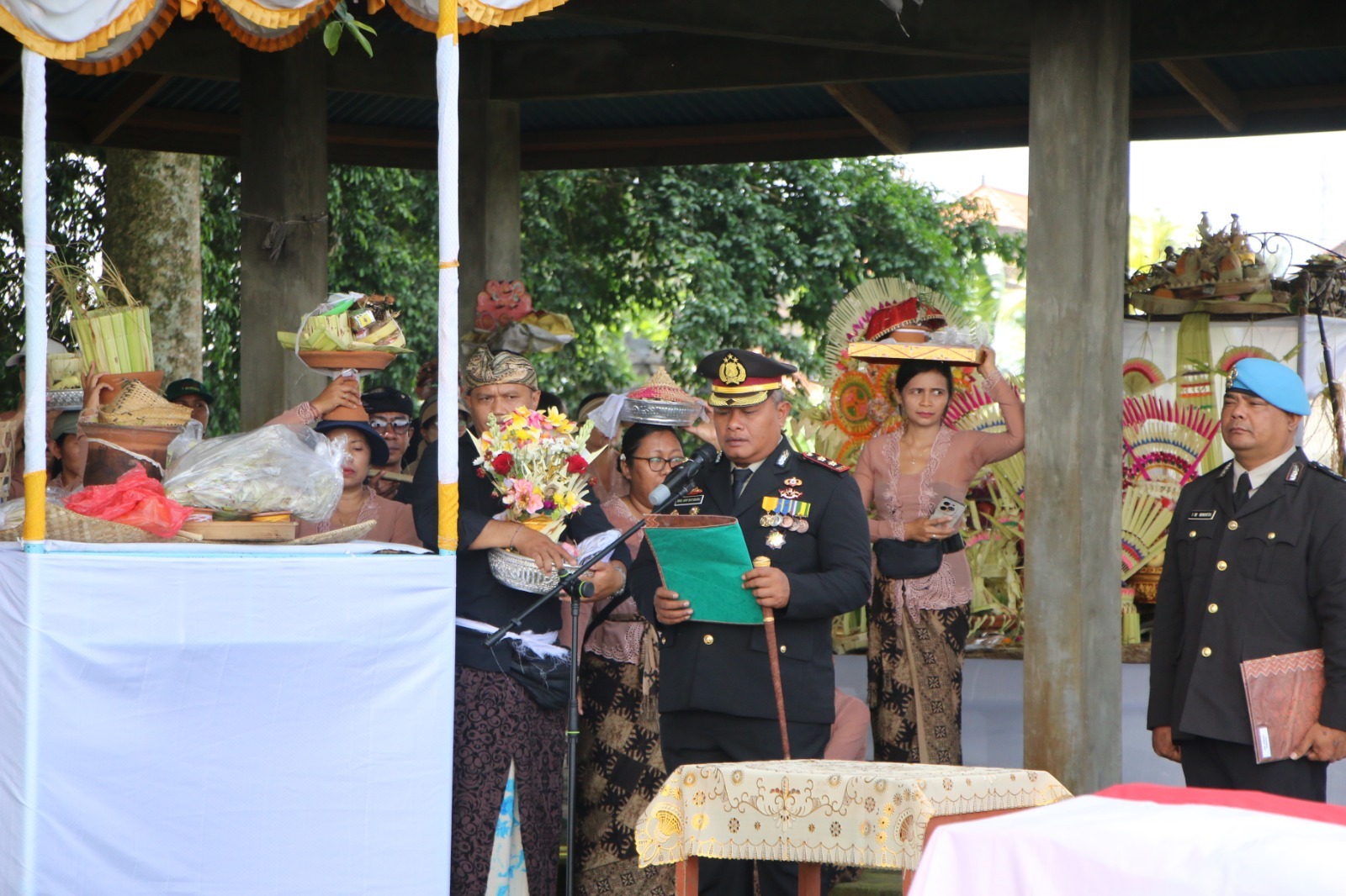 Upacara perabuan dilangsungkan secara adat dan kedinasan, dihadiri oleh jajaran pejabat utama Polres Badung, personel Polri, keluarga besar almarhum, tokoh masyarakat, serta warga sekitar yang turut memberikan penghormatan terakhir.